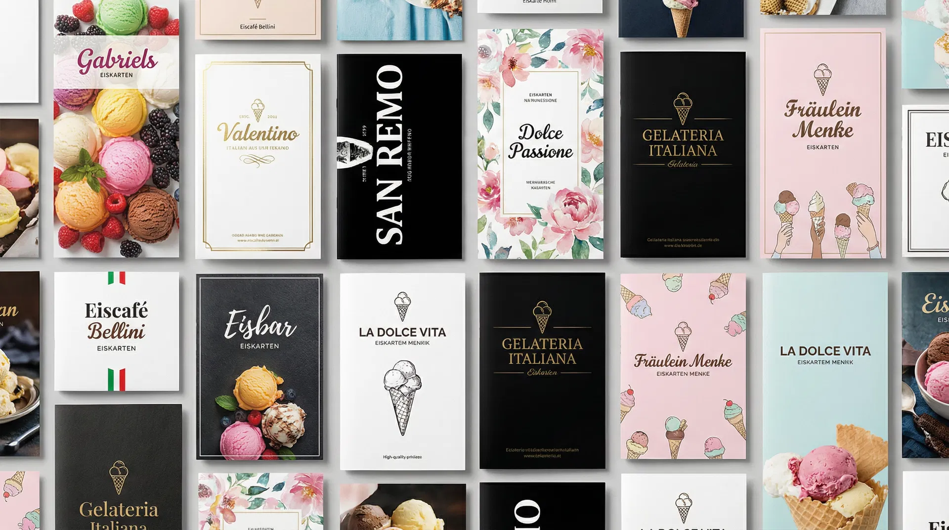 Wir gestalten Ihre Menükarte von Grund auf – maßgeschneidert für Ihre Marke, Ihr Angebot und Ihre Gäste. Mit über 500 erfolgreichen Projekten sind wir der Spezialist für Eiscafés, Gelaterias und Konditoreien.